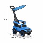 Aceasta jucarie stimuleaza dezvoltarea abilitatilor motorii si coordonarea copilului. Vehicul de impins: cand copilul a obosit sau e prea mic pentru a deplasa masina, parintele il poate plimba, folosind manerul de impins