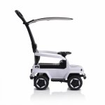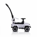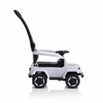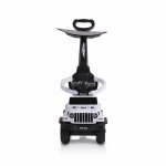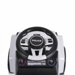 Masinuta copii fara pedale Moni Police White cu maner parental detasabil, suport pentru picioare, protectie care previne rasturnarea pe spate a copilului, volan cu melodii distractive, bara de protectie