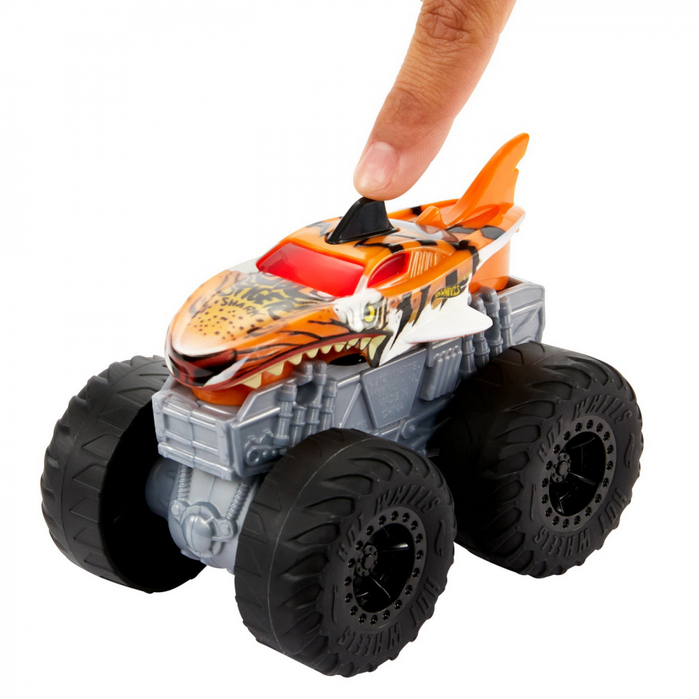 Masinuta cu functii si sunete Hot Wheels Monster Truck Roarin Wreckers Tiger Shark scara 1:43