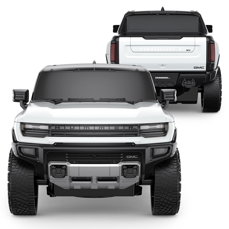 Copilul dumneavoastra se poate juca in voie cu masina cu telecomanda Hummer EV, alb scara 1 la 24, oferita de brandul international Rastar.