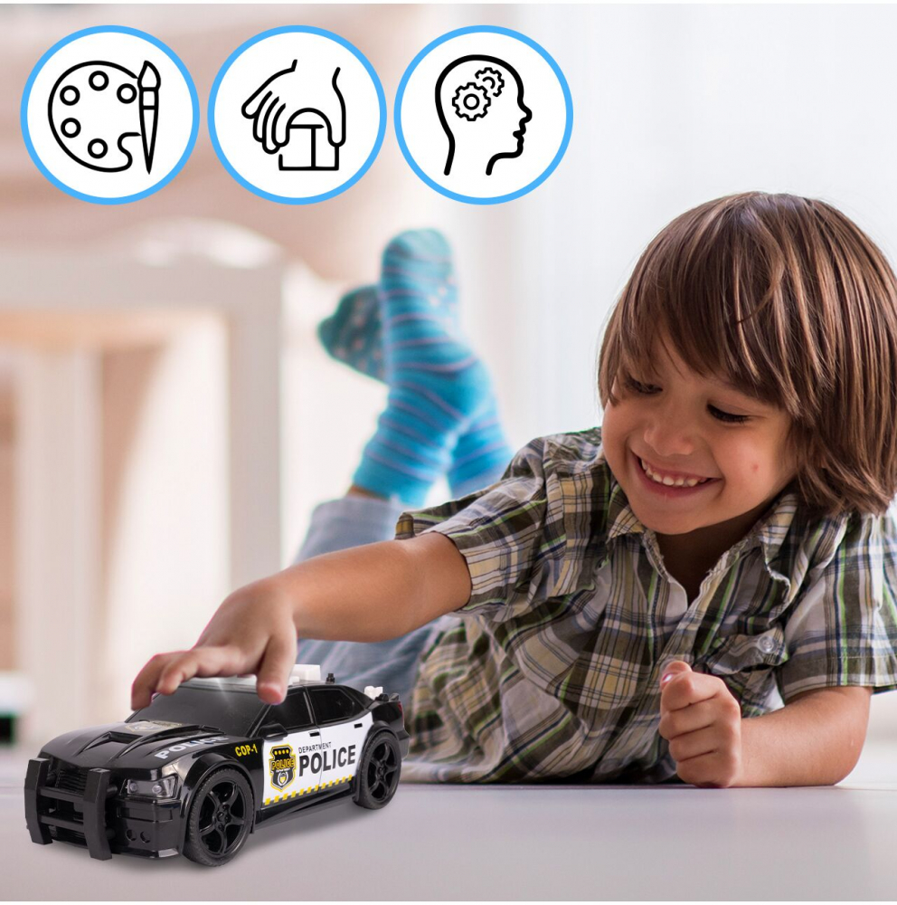 Pe langa distractie, jocul cu masina de politie ii ajuta pe copii sa inteleaga rolul serviciilor de urgenta, sa-si dezvolte imaginatia prin jocuri de rol si sa invete despre siguranta sociala.