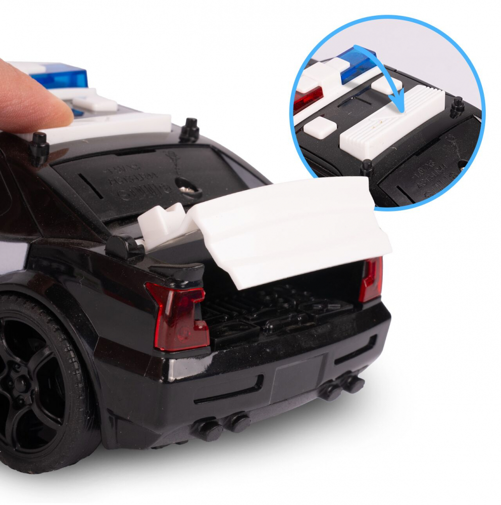 Efecte Lumini si Sunet Realiste: Apasa cele doua butoane de pe acoperis pentru a activa sirena sonora autentica si luminile intermitente albastru-rosu de politie. Adauga un plus de realism fiecarui scenariu de joaca!