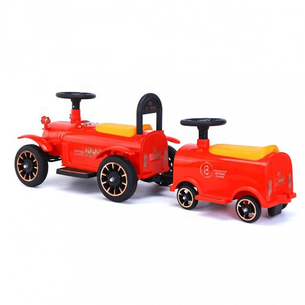 Masinuta electrica de epoca pentru copii Nichiduta Modern Classic Red 12V cu Vagon pentru al doilea copil, 2 motoare, Spatar inalt, Roti din plastic rezistent, Faruri cu lumini LED, Pornire la buton, Pedala de acceleratie