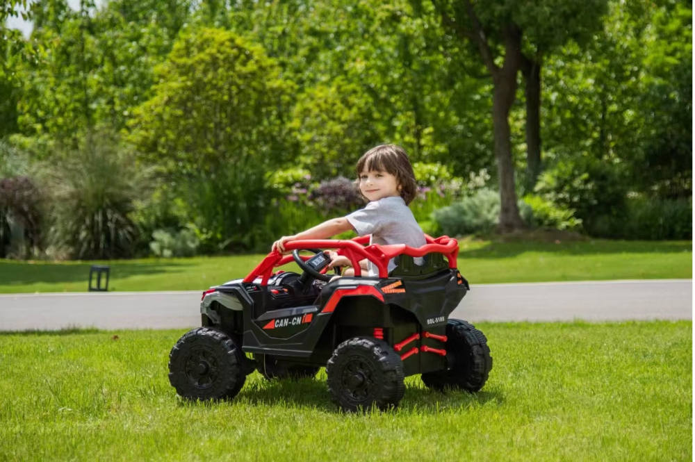 Masinuta electrica de teren pentru copii Nichiduta Can CN UTV Drive Red 12V cu telecomanda 2.4G,2 motoare 38W,lumini LED,suspensii spate,roti late rezistente,margine de siguranta rabatabila,sunete si muzica,functie swing