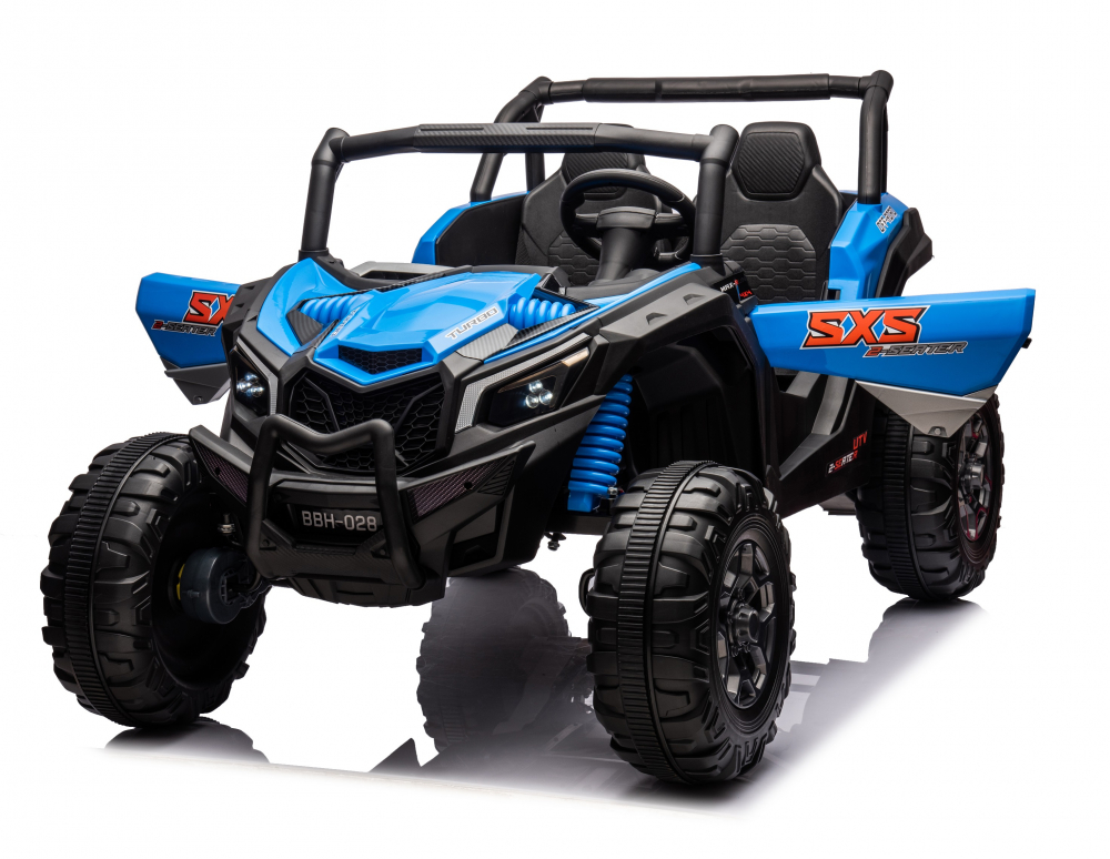 Masinuta electrica pentru 2 copii Nichiduta Turbo Off Road 4X4 Blue 24V 800W ,cu telecomanda 2.4G,Suspensii ,roti din cauciuc EVA,Scaun din piele,Usi cu deschidere,Lumini LED,Muzica,Centura de siguranta,Mufa USB,Bluetooth