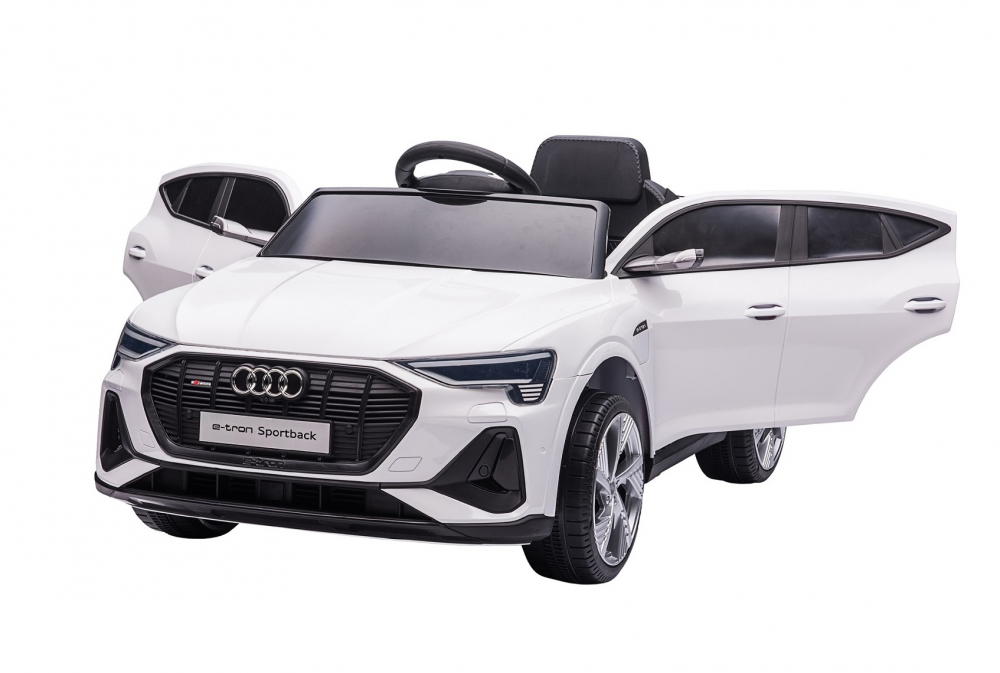 Masinuta electrica pentru copii Audi E-Tron SportBack White cu licenta,roti eva,scaun piele,acumulator 12V,suspensii,sistem troller,usi cu deschidere,slow start,lumini LED,mp3/usb,oglinzi retrovizoare,sarcina maxima 30 kg