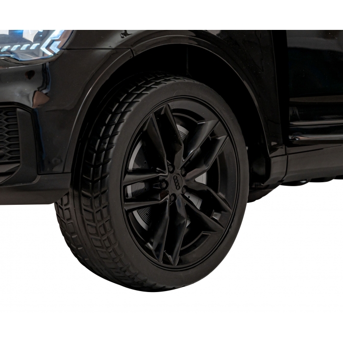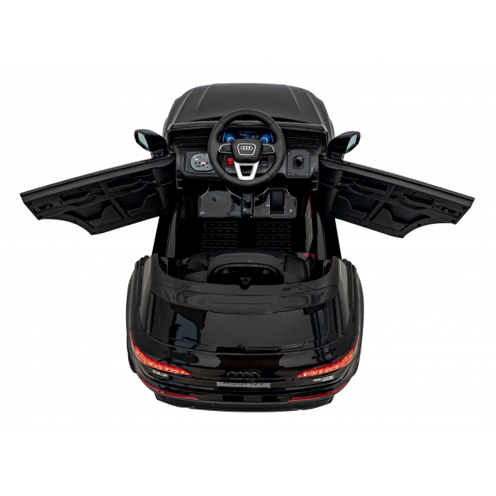 Masinuta electrica pentru copii Audi Q7 New Lift negru 70W cu telecomanda, pornire lenta, panou audio, scaun piele si roti din spuma Eva