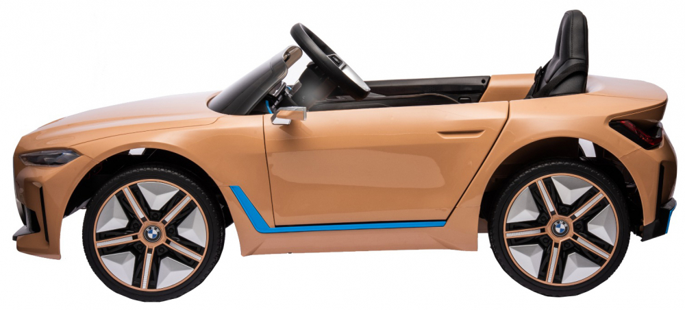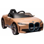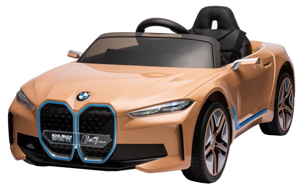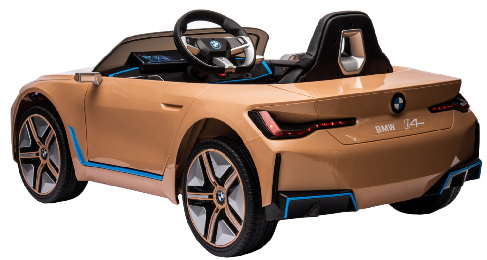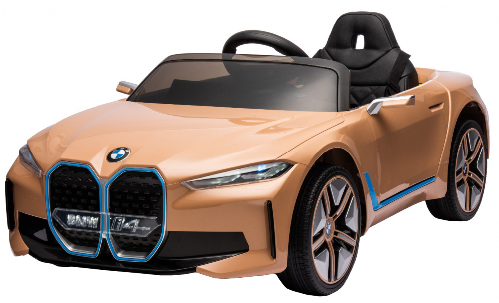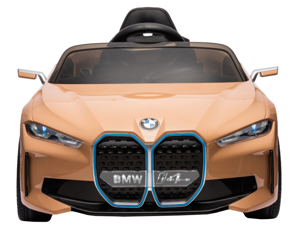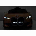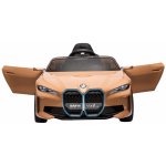 Masinuta electrica pentru copii BMW I4 Brown 12V 70W cu scaun piele, roti EVA, slow start, lumini si sunete