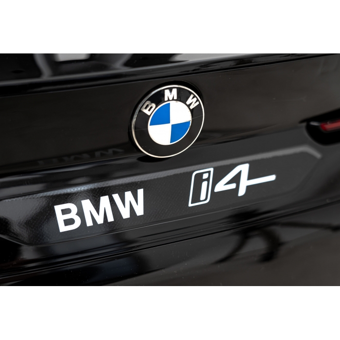 Masinuta electrica pentru copii BMW I4 negru 50W cu telecomanda, suspensii, panou audio, scaun piele si roti din spuma Eva