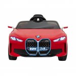 Masinuta electrica pentru copii BMW I4 rosu 50W cu telecomanda, suspensii, panou audio, scaun piele si roti din spuma Eva