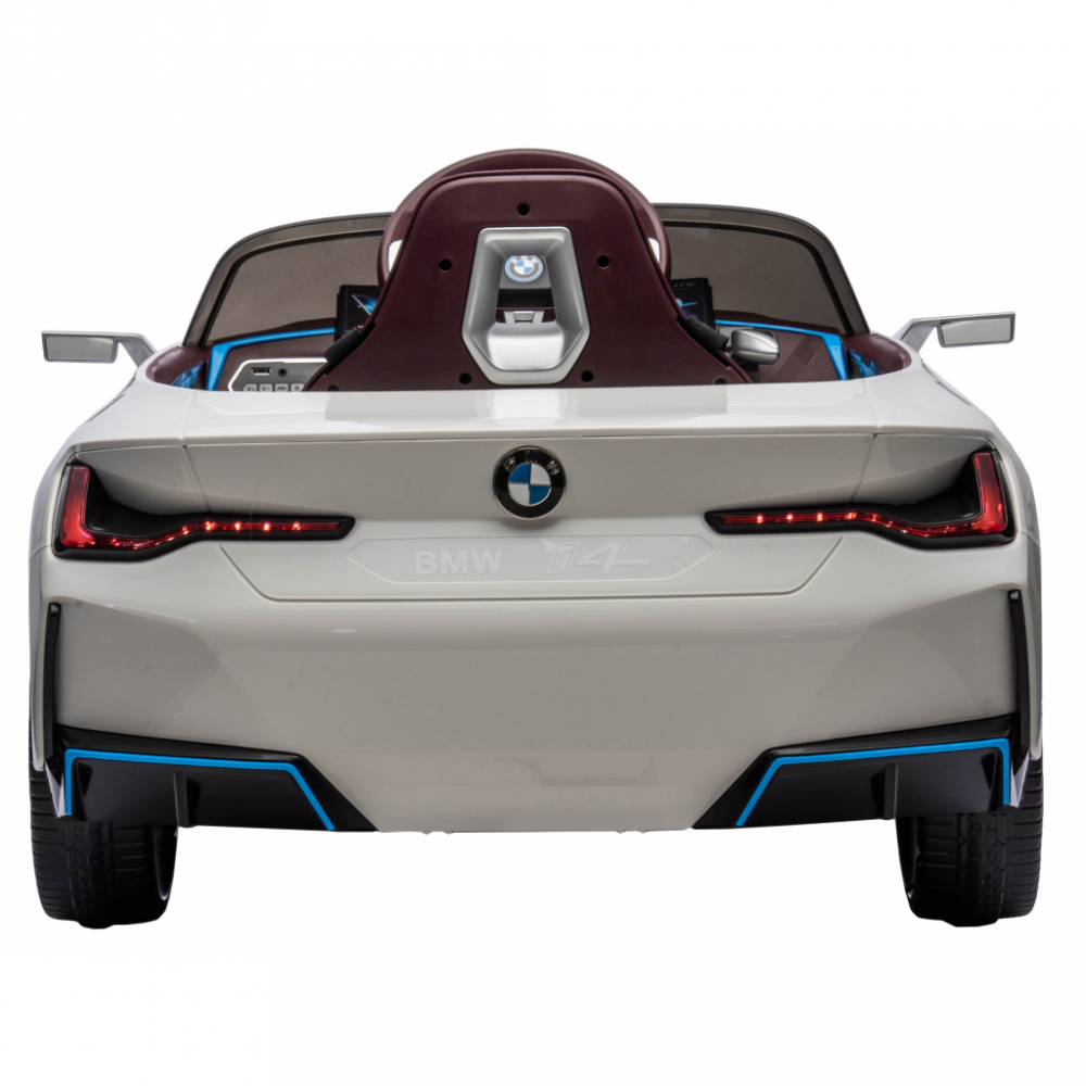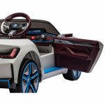 Masinuta electrica pentru copii BMW I4 White 12V 70W cu scaun piele, roti EVA, slow start, lumini si sunete
