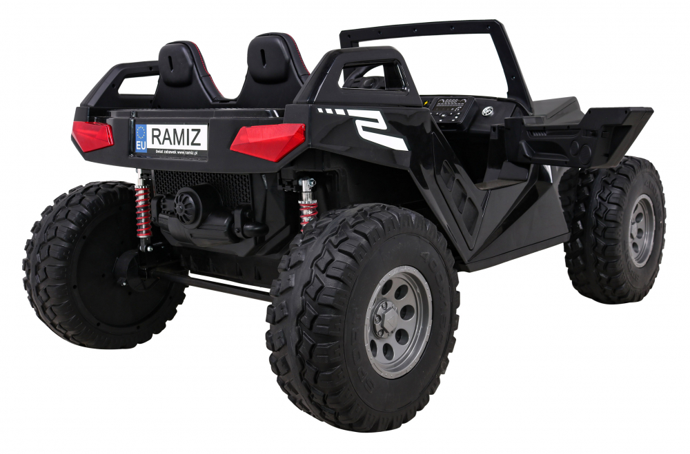 Masinuta electrica pentru copii Buggy Clash 4x4 Black, 4 motoare de 45W, 2 baterii de 12V/7Ah, Telecomanda 2,4 GHz, roti EVA cu suspensii, sistem audio complet MP3, USB, Bluetooth, Radio FM
