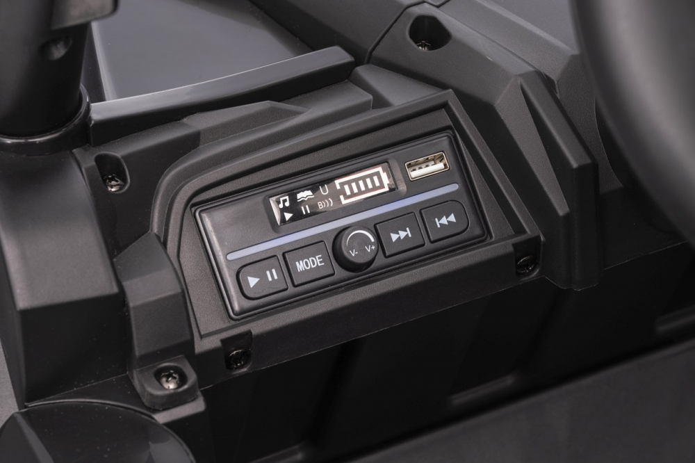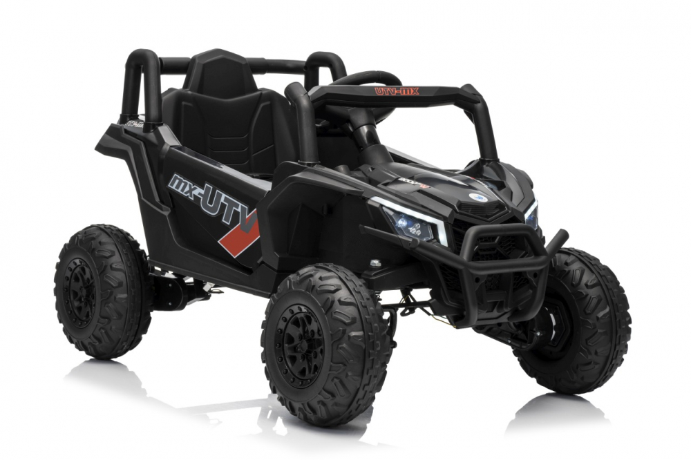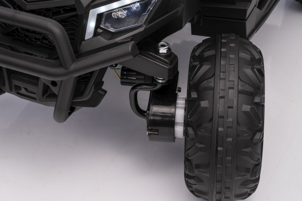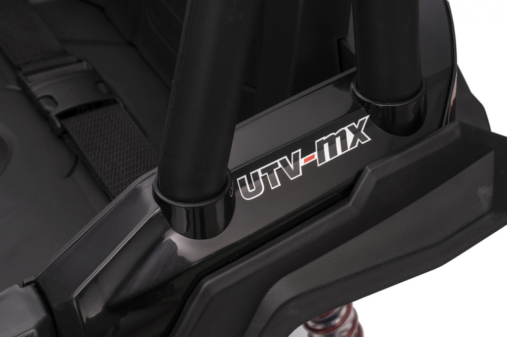 Masinuta electrica pentru copii Buggy Madman UTV-MX Black, 4 motoare 35W, baterie 12V10Ah, telecomanda 2.4 GHz, roti spuma EVA 24x10 cm, sarcina maxima 30 kg, scaun piele ecologica, deschidere usi, MP3, USB, Bluetooth