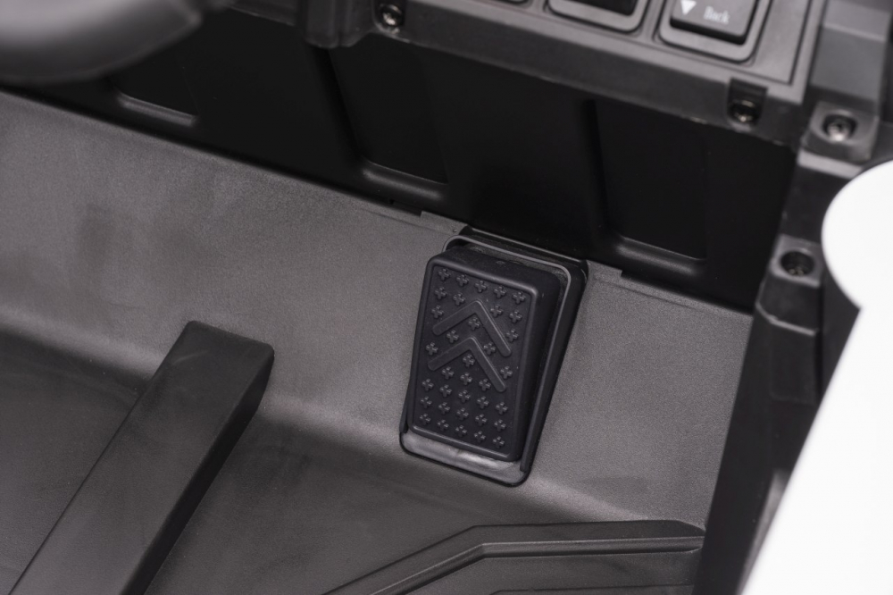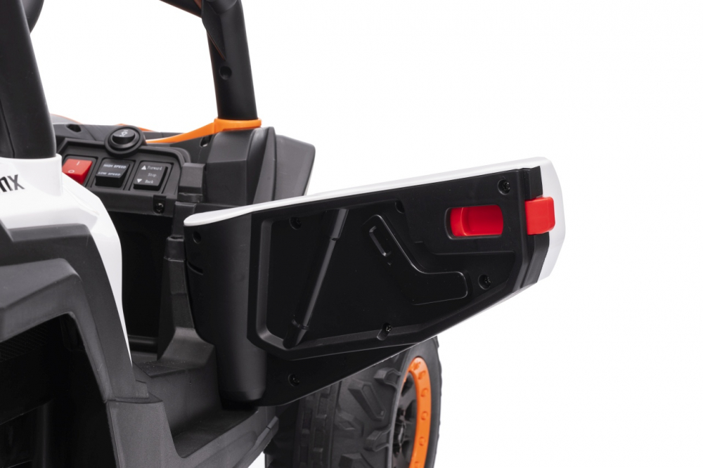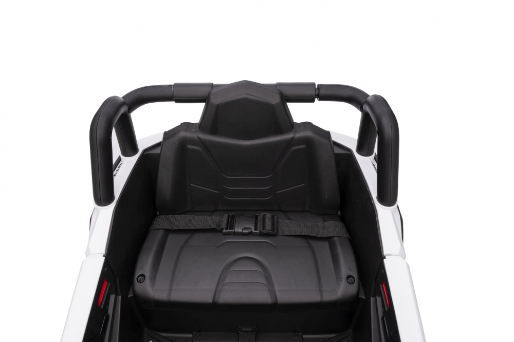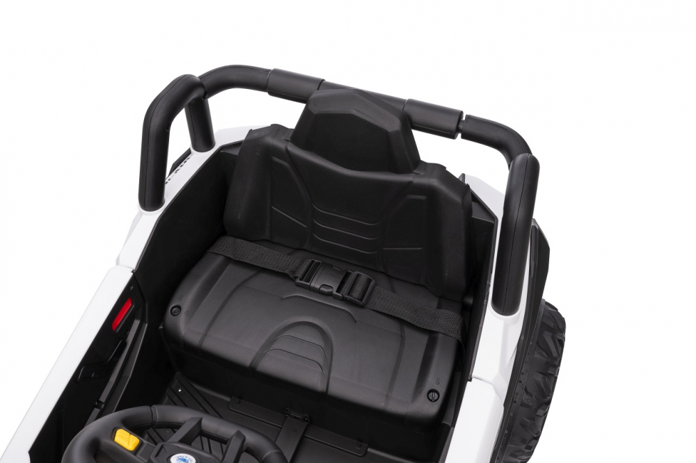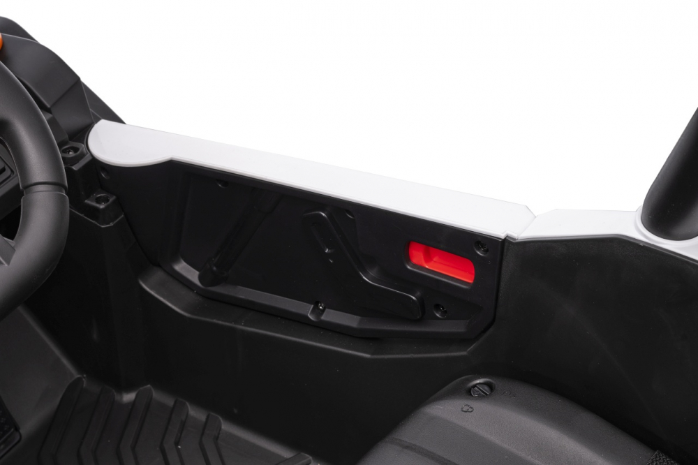 Masinuta electrica pentru copii Buggy Madman UTV-MX White, 4 motoare 35W, baterie 12V10Ah, telecomanda 2.4 GHz, roti spuma EVA 24x10 cm, sarcina maxima 30 kg, scaun piele ecologica, deschidere usi, MP3, USB, Bluetooth