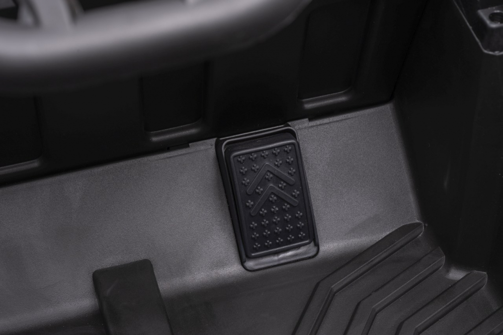 Volanul este prevazut cu butoane sonore si claxon, iar buggy-ul vine cu melodii preincarcate si sunet de pornire a motorului pentru o experienta autentica.