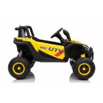 Masinuta electrica pentru copii Buggy Madman UTV-MX Yellow, 4 motoare 35W, baterie 12V10Ah, telecomanda 2.4 GHz, roti spuma EVA 24x10 cm, sarcina maxima 30 kg, scaun piele ecologica, deschidere usi, MP3, USB, Bluetooth