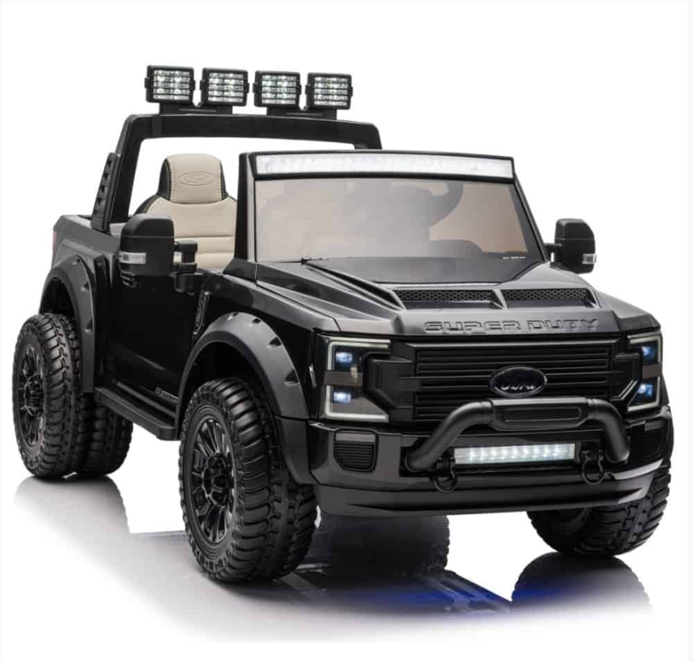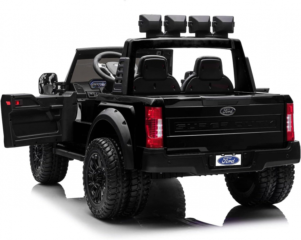 - Masinuta este o copie la scara a robustului Ford F-450 Super Duty, cu detalii realiste care vor incanta orice fan auto. Culoarea neagra eleganta ii confera un aspect premium.