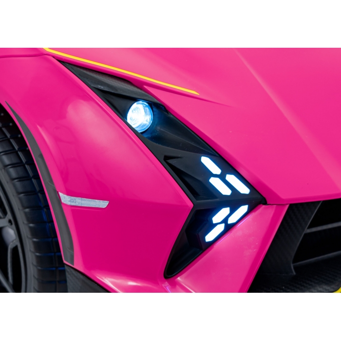 Masinuta electrica pentru copii Lamborghini Invencible roz 140W cu telecomanda, sunete, lumini, panou audio, scaun piele si roti din spuma Eva