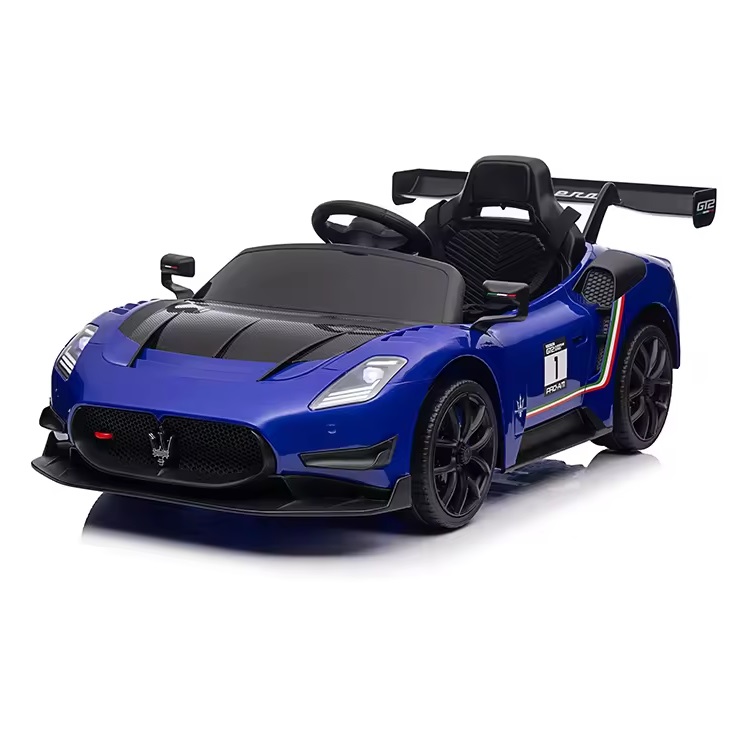 Masinuta electrica pentru copii Maserati MC20 GT2 Blue 300W cu echipare Premium si licenta, pornire la buton, scaun din piele, slow start, lumini, suspensii, roti din spuma Eva si scaun piele