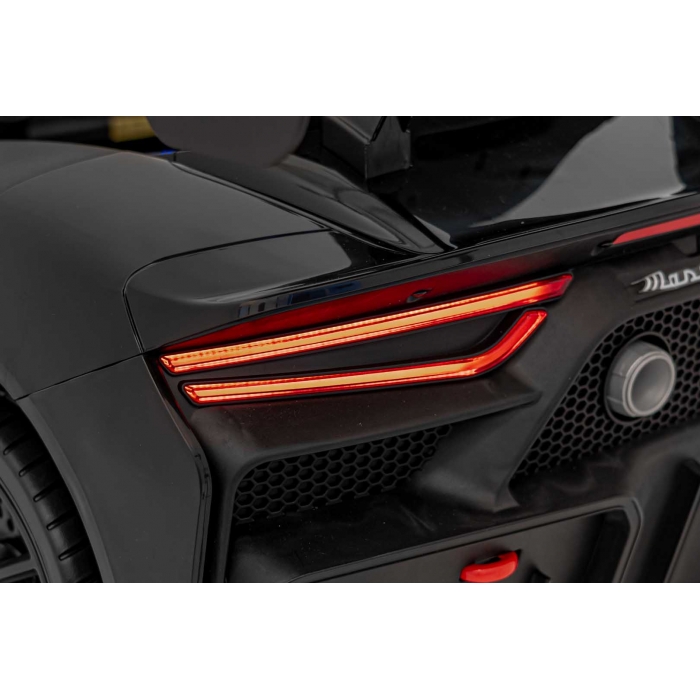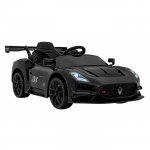 Masinuta electrica pentru copii Maserati MC20 GT2 negru 110W cu telecomanda, pornire lenta, suspensii, panou audio, scaun piele si roti din spuma Eva