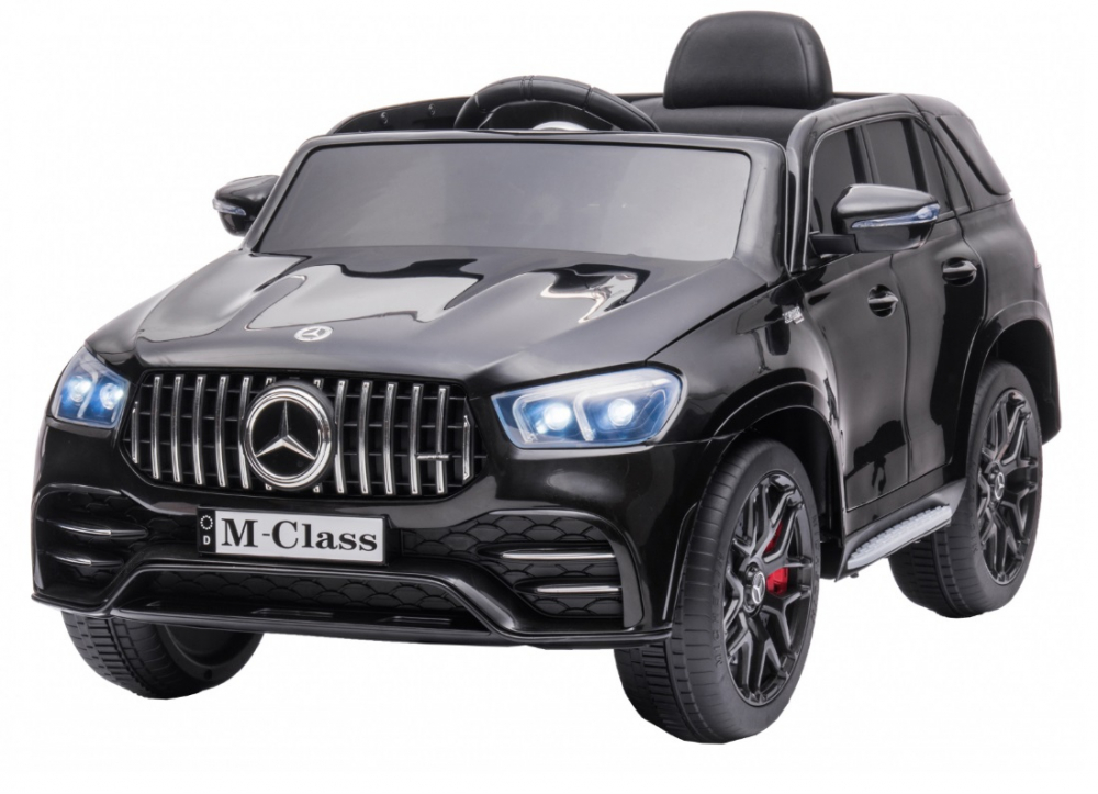 Masinuta electrica pentru copii Mercedes M Class Black cu scaun de piele, doua motoare, telecomanda, lumini, volan multifunctional si suspensii