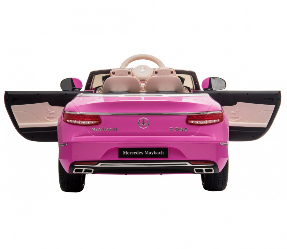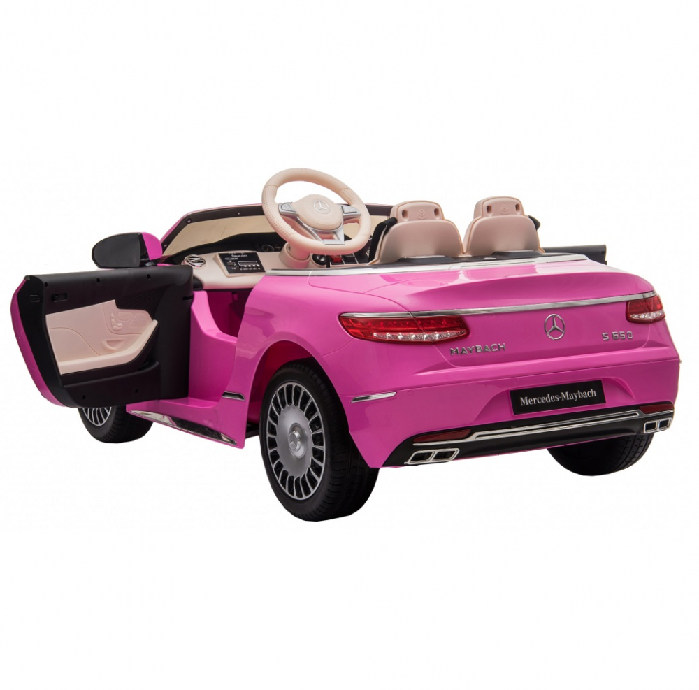 Masinuta electrica pentru copii Mercedes Maybach S650 Pink 12V4.5Ah,echipare premium si licenta,2 motoare,roti EVA,scaun piele,usi cu deschidere,pornire la cheie,unitate audio cu muzica,lumini LED,sistem troller,suspensii