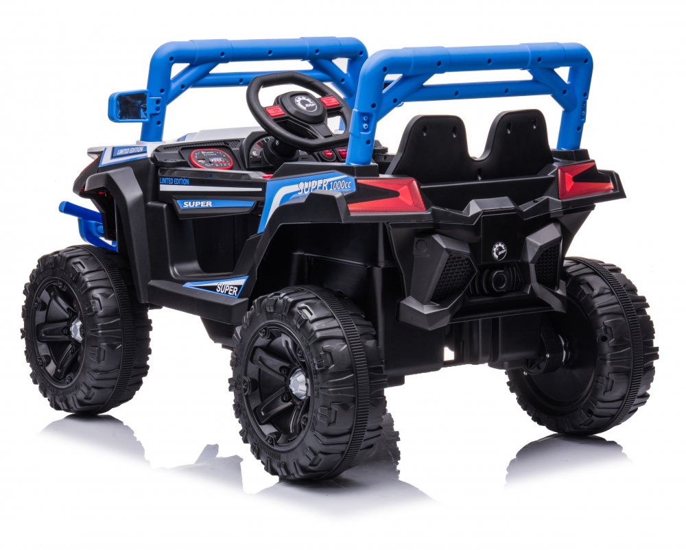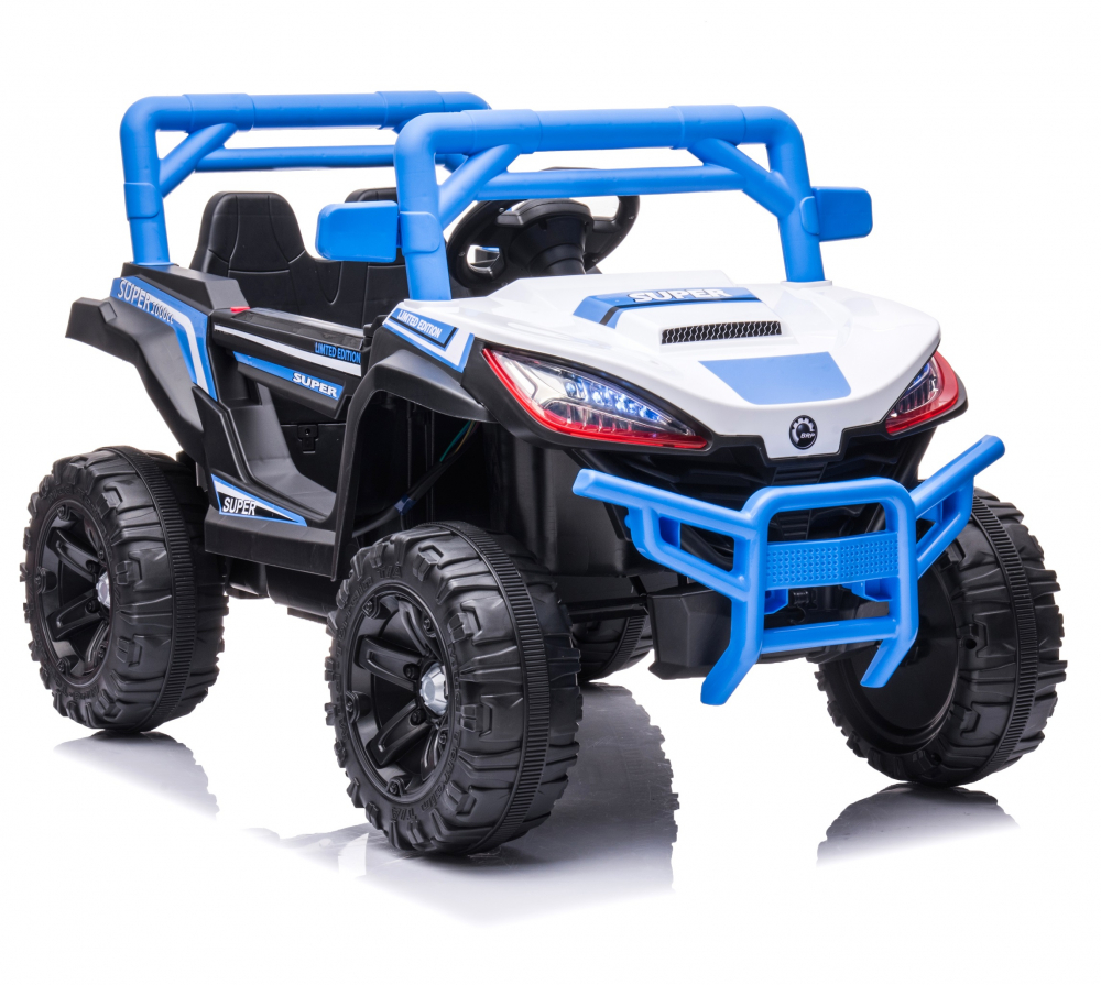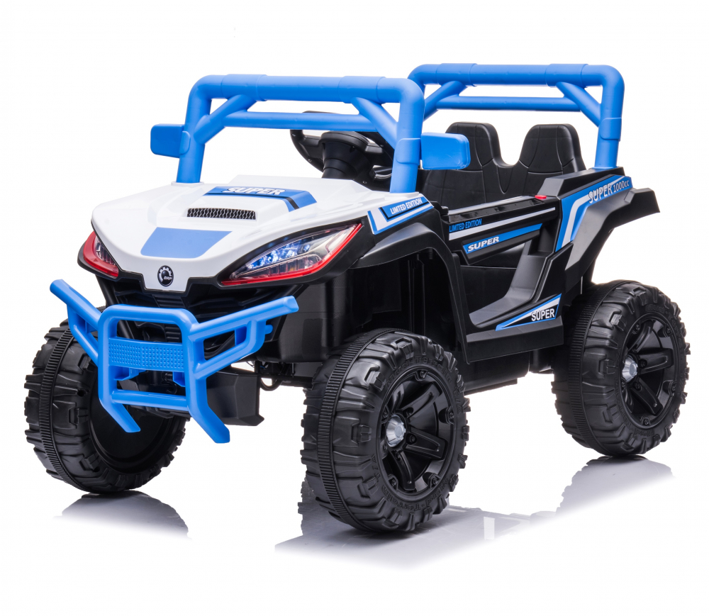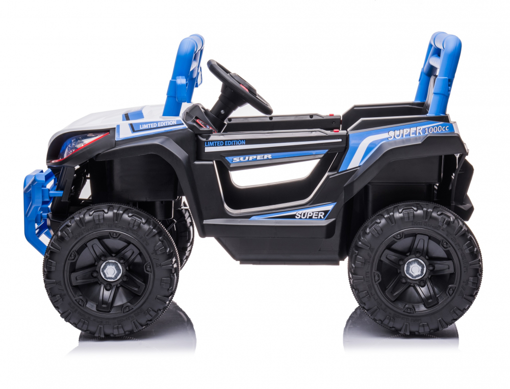 Masinuta electrica pentru copii Nichiduta Super Limited Edition Blue 70W, roti EVA, lumini, functii muzicale, pornire la buton, oglinzi retrovizoare si slow start
