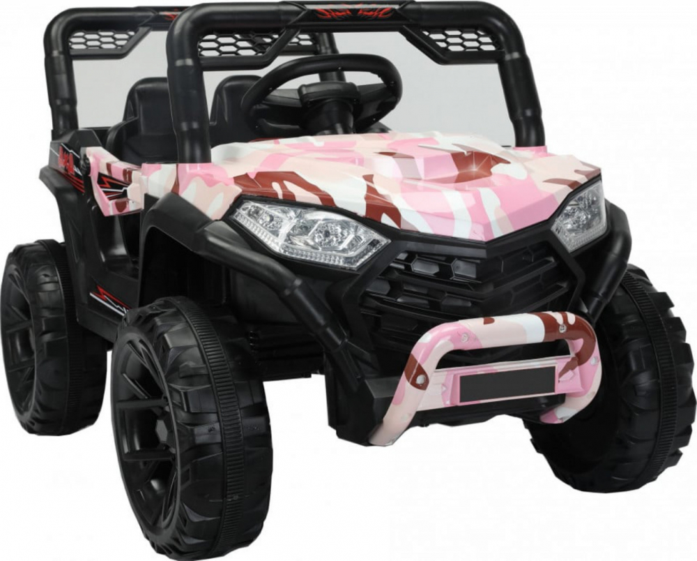Masinuta electrica pentru copii Novokids Buggy Mini UTV cu faruri luminoase, telecomanda, 3-6 ani , max 30 kg, 3 viteze, model Offroad Roz Camuflaj