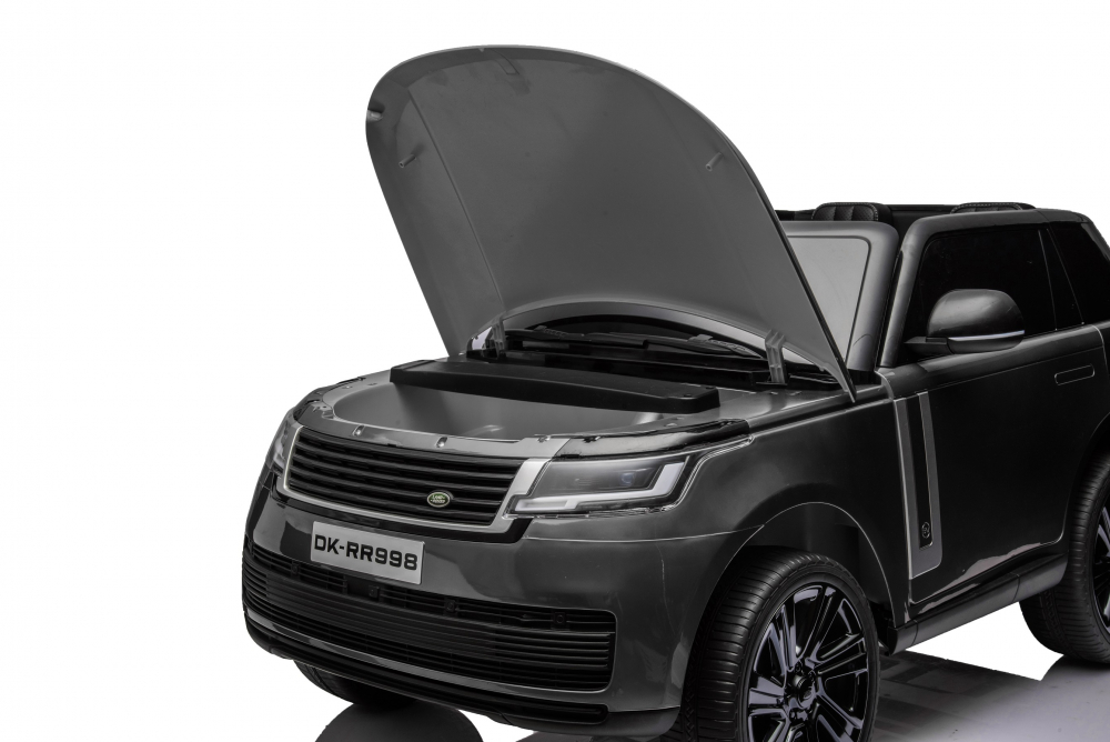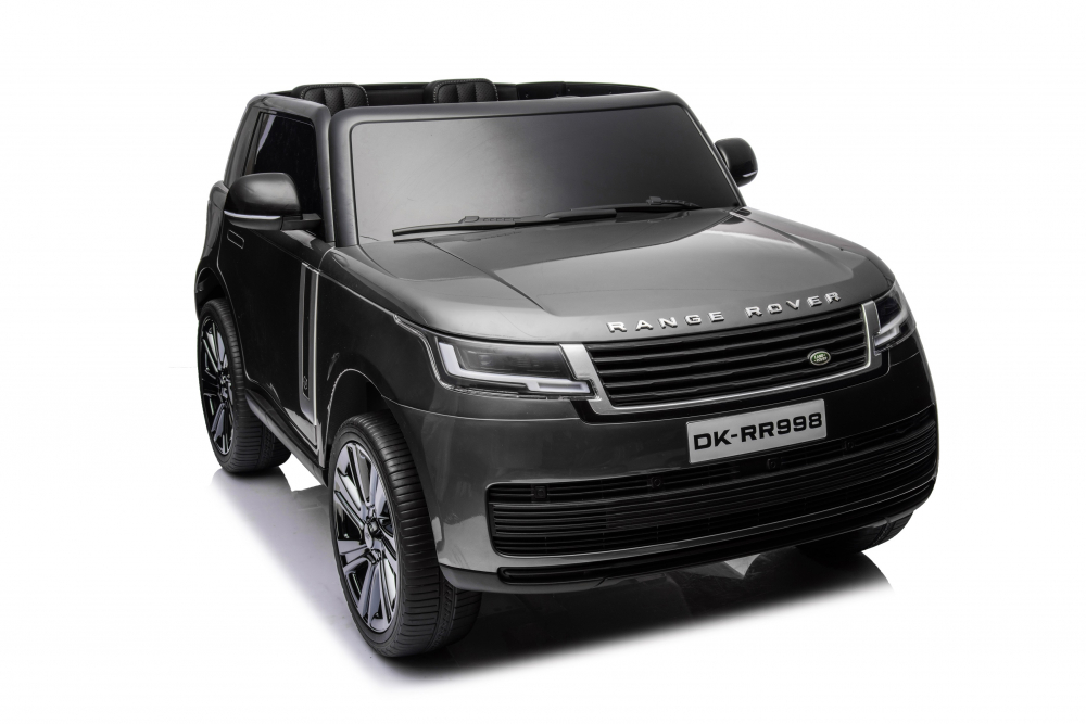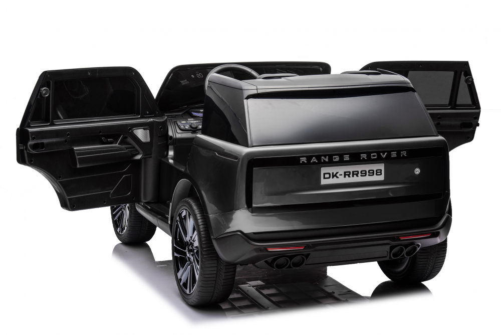Masinuta electrica pentru copii Range Rover Painted Dark Grey 90W cu echipare Premium si licenta, oglinzi retrovizoare, deschidere usi, scaun piele, lumini si roti din spuma Eva