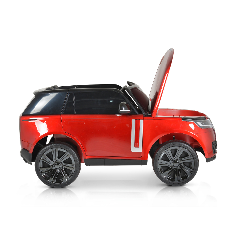Masinuta electrica pentru copii Range Rover Painted Red 24V 480W cu 2 locuri si echipare Premium, panou audio, lumini, roti din spuma Eva, Oglinzi retrovizoare si scaun din piele