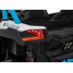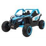Masinuta electrica pentru copii SR SUPER 66 Blue, 4 motoare de 75W, baterie 24V/7Ah, 3 viteze, telecomanda 2.4 GHz, scaun dublu din piele ecologica, radio FM, MP3, Bluetooth, port USB, lumini LED, deschidere usi