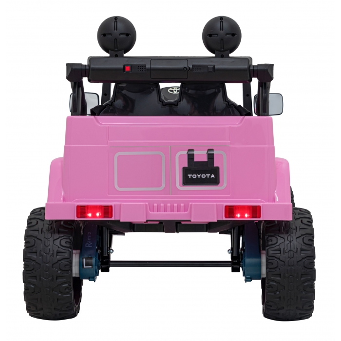Masinuta electrica pentru copii Toyota FJ Cruiser 4x4 roz 90W cu telecomanda, sunete, suspensii, lumini, panou audio, scaun piele si roti din spuma Eva