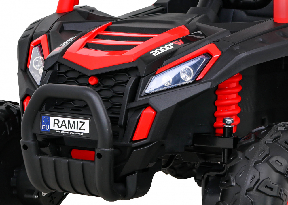 Aceasta masinuta cu un singur loc, intr-o nuanta vibranta de rosu, este conceputa pentru a oferi ore intregi de distractie si siguranta, replicand experienta unui adevarat UTV.