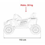 Buggy UTV Curse 2000M are o lungime de 113 cm, o latime de 73 cm si o inaltime de 65 cm, cu o garda la sol de 19 cm.