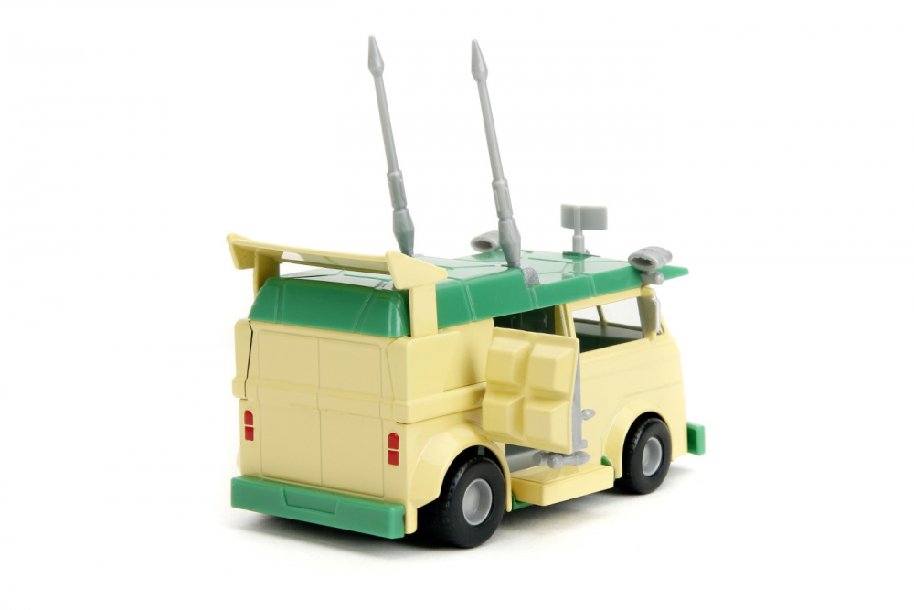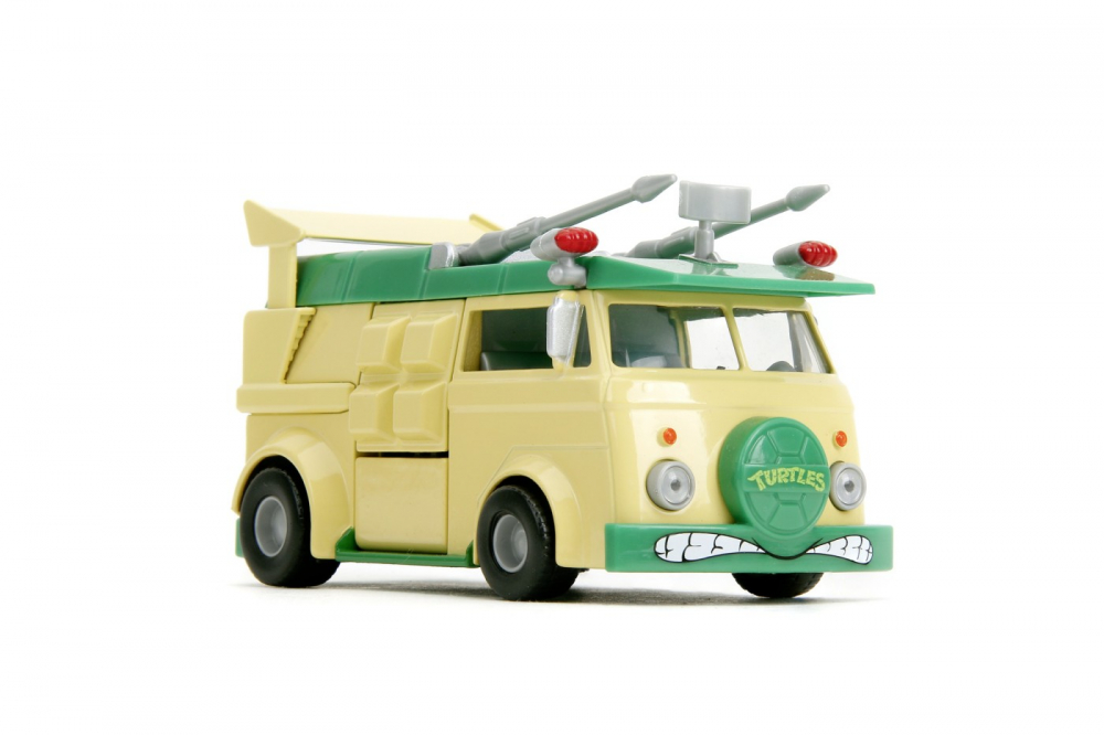 Construita din metal turnat (die-cast) de inalta calitate, masinuta reda fidelul celebrului Party Wagon, vehiculul legendar al testoaselor Leonardo, Michelangelo, Donatello si Raphael.
