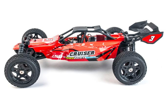 • Masinuta Cruiser: Scara 1:12 este un off-road-er veritabil!! Echipata cu anvelope speciale de off - road si suspensii pe toate cele 4 roti masinunta Ninco Cruiser este echipata cu tractiune 4x4, iar suspensiile si rotile cu rulmenti asigura o stabilitate optima.