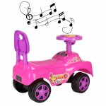 Masinuta pentru copii Ikonka, fara pedale pink, volan cu butoane muzicale, potrivita copiilor intre 1-3 ani, greutate maxima admisa 25 kg