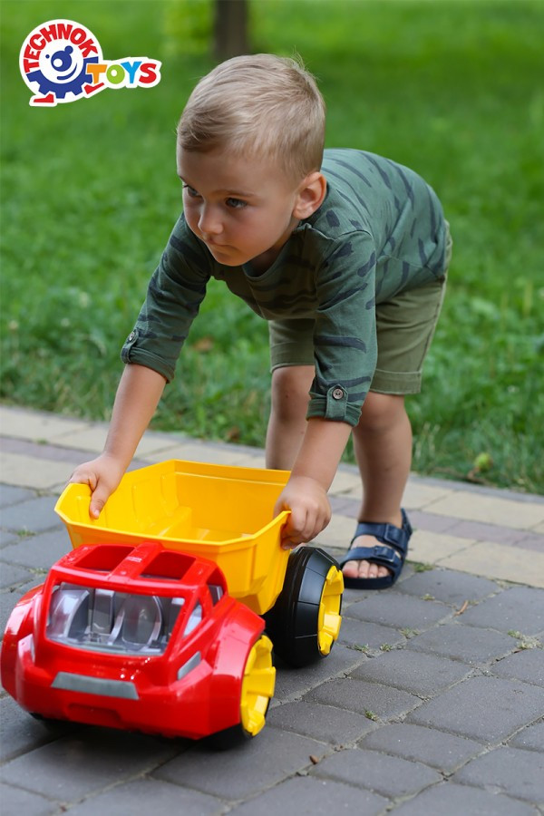 Camionul basculant ergonomic pare sa invite soferul sa lucreze si copilul sa se joace jocuri interesante.