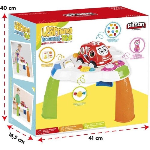 Masuta cu activitati pentru bebelusi Pilsan Learning Activity Play Table cu activitati de sortare,rotite motrice,telefon cu muzica si lumini si masinuta cu sortator incluse