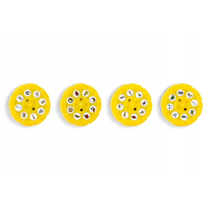 - proiectorul are suprapuneri cu pana la 32 de imagini (dinozauri, fructe, legume, animale etc.);