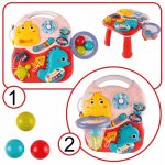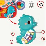 Masuta de activitati 2 in 1, cu blat detasabil, cu Pian, Cos de baschet, Ceas rotativ, 32.3 x 28 x 23 cm, Seahorse