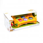 Această jucărie interactivă este special concepută pentru mâinile micuțe, având colțuri rotunjite, culori vii și piese ușor de manevrat.