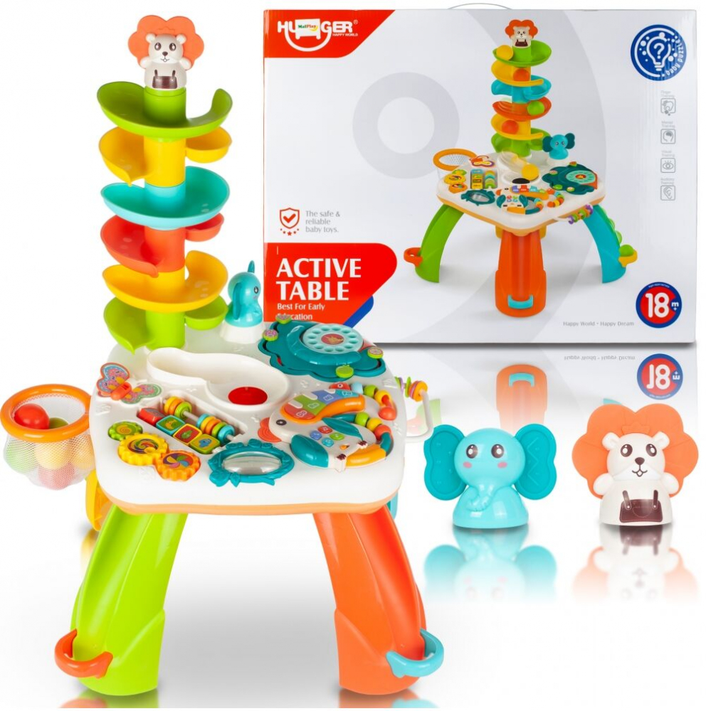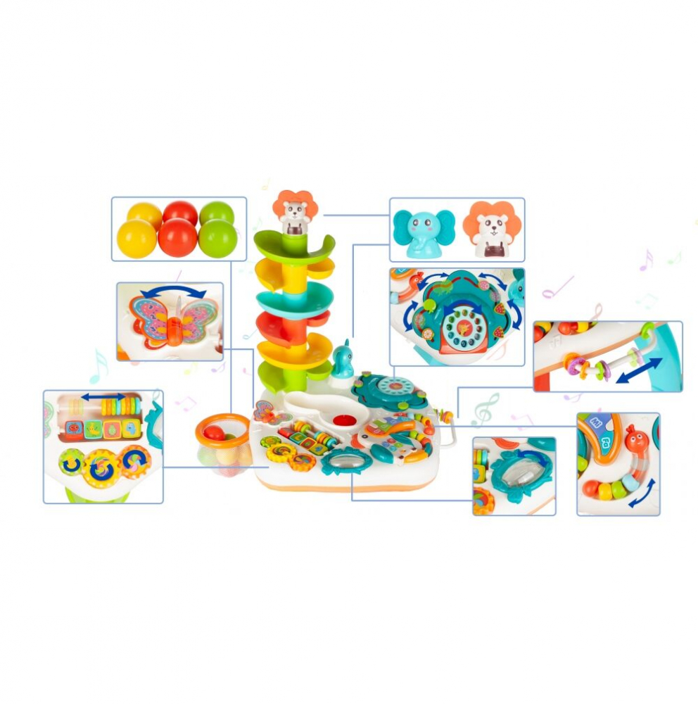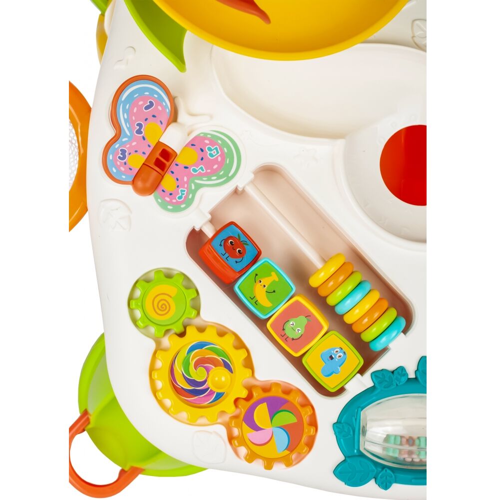O masuta interactiva cu multe elemente mobile, dezvolta si imbunatateste perfect abilitatile manuale si motorii ale copilului.