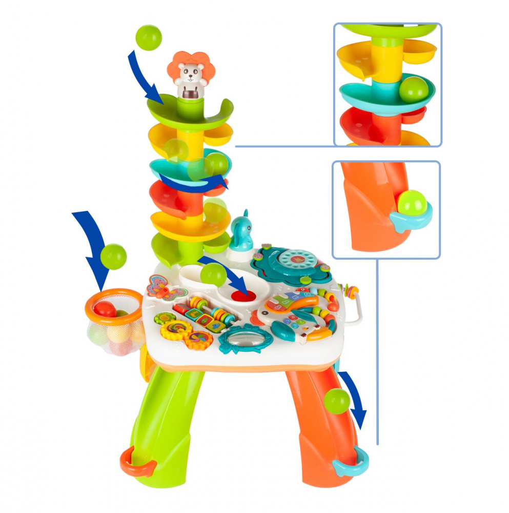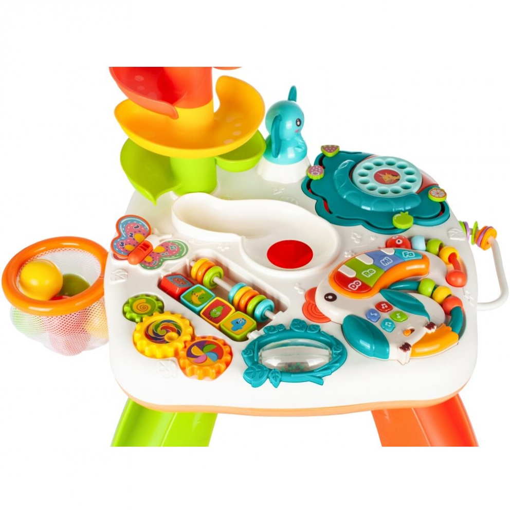 Masuta de activitati cu Pian, sunete si Lumini multicolore, Tobogan cu bile, Telefon, angrenaje rotative, 75 x 46 cm, Active Table