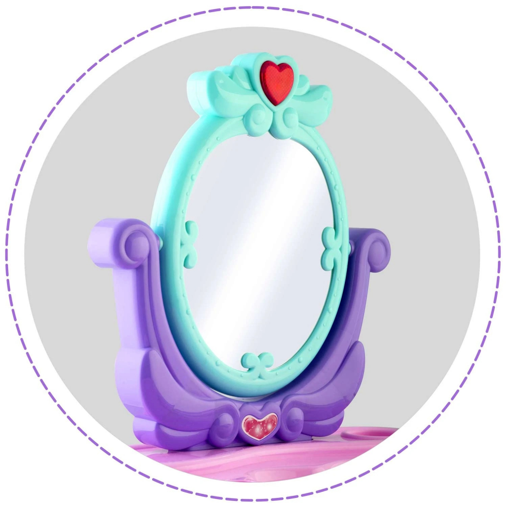 Masuta de infrumusetare pentru fetite Ricokids Pretty Beauty Oglinda fermecata cu sunete, sertar, elemente mobile si accesorii incluse