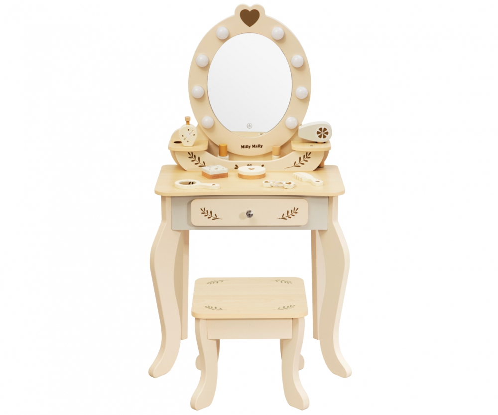 Masa de toaleta ELLY nu este doar o jucarie, ci un coltisor magic de frumusete care le ajuta pe cele mici sa se simta speciale in fiecare zi!