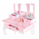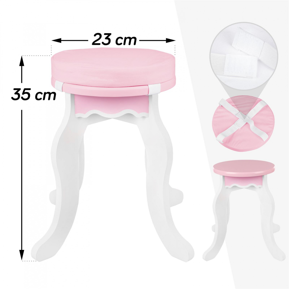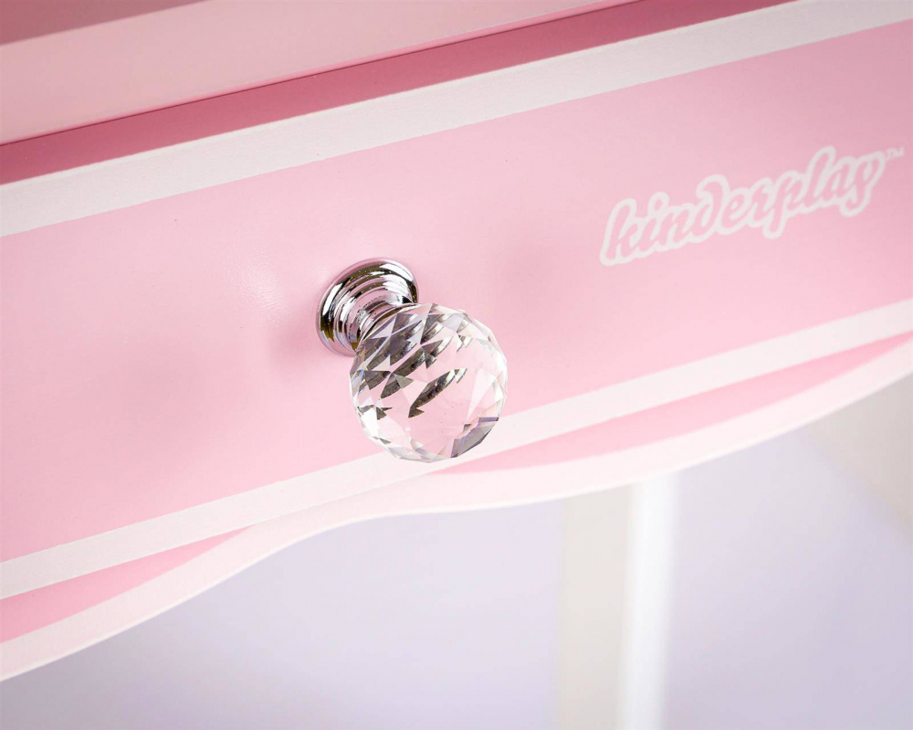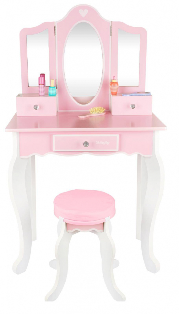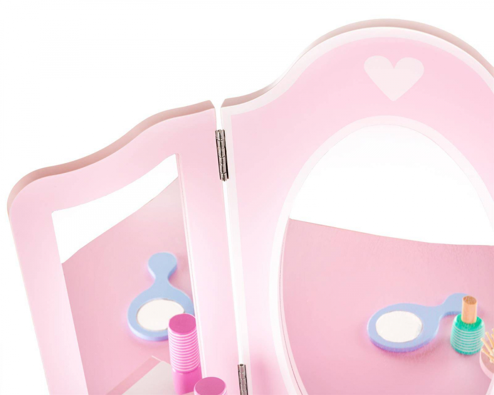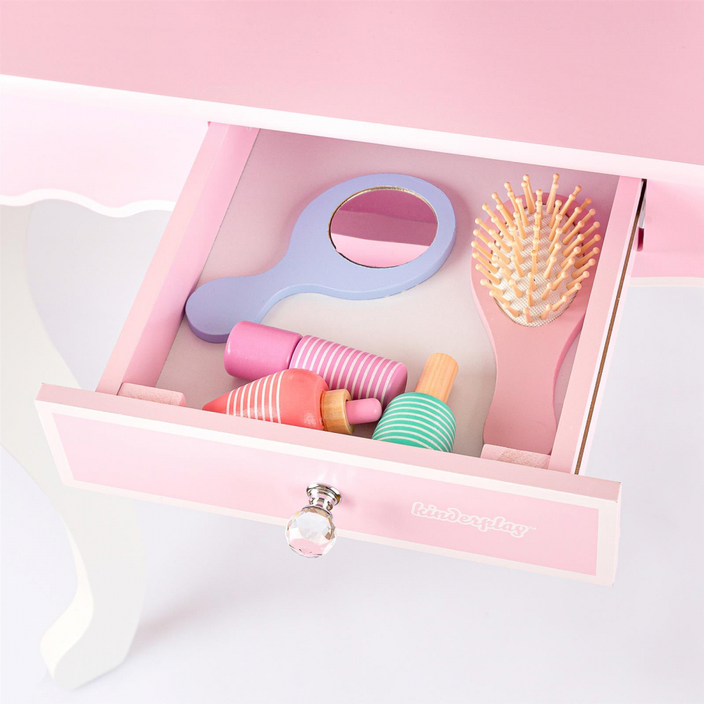 Masuta de toaleta cu structura din lemn pentru copii, Kinderplay, cu oglinzi sigure din plexiglas, scaunel cu perna si accesorii esentiale incluse, 60 x 38 x 105.5 cm Pink