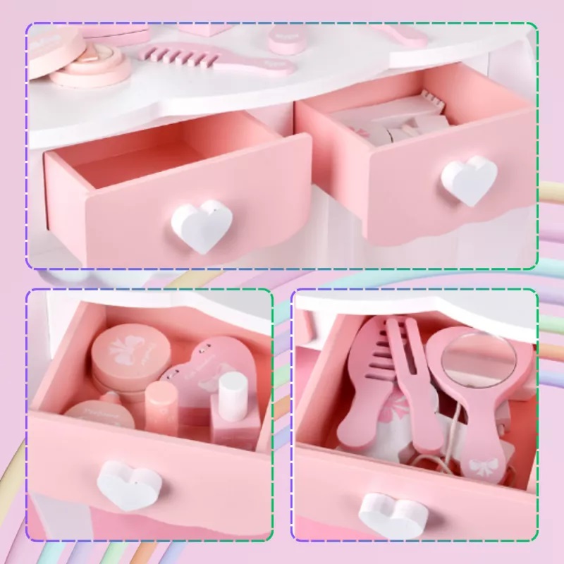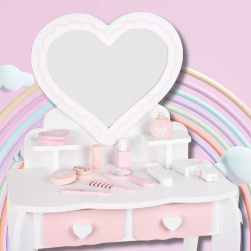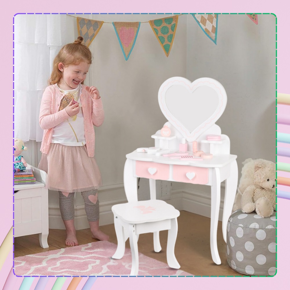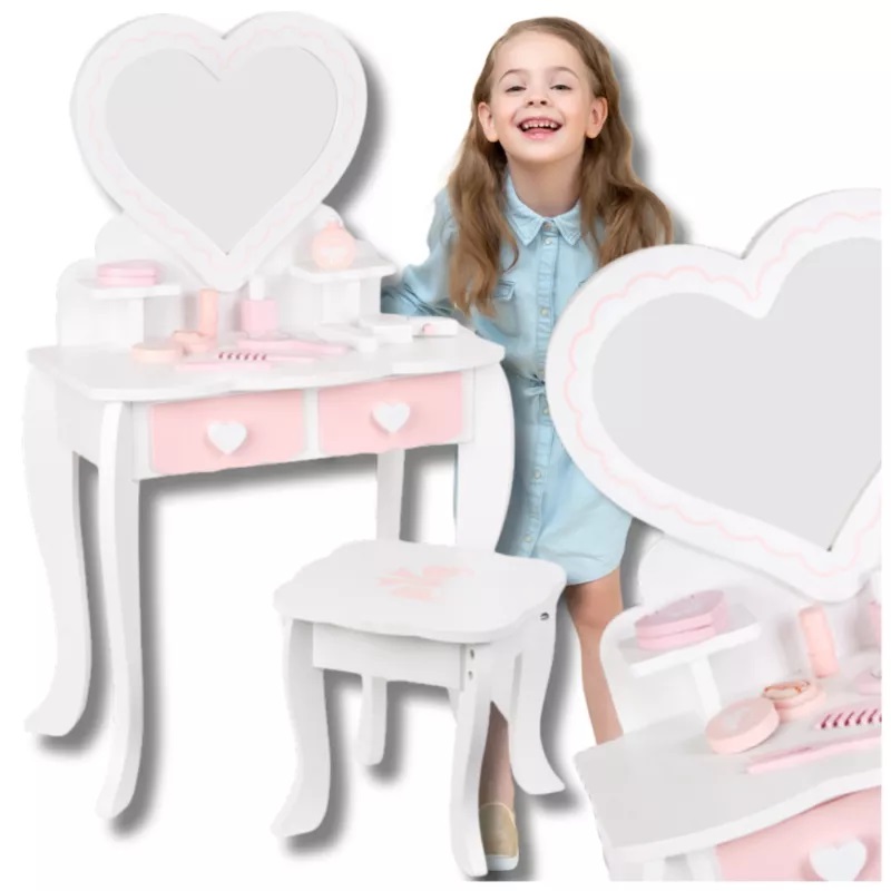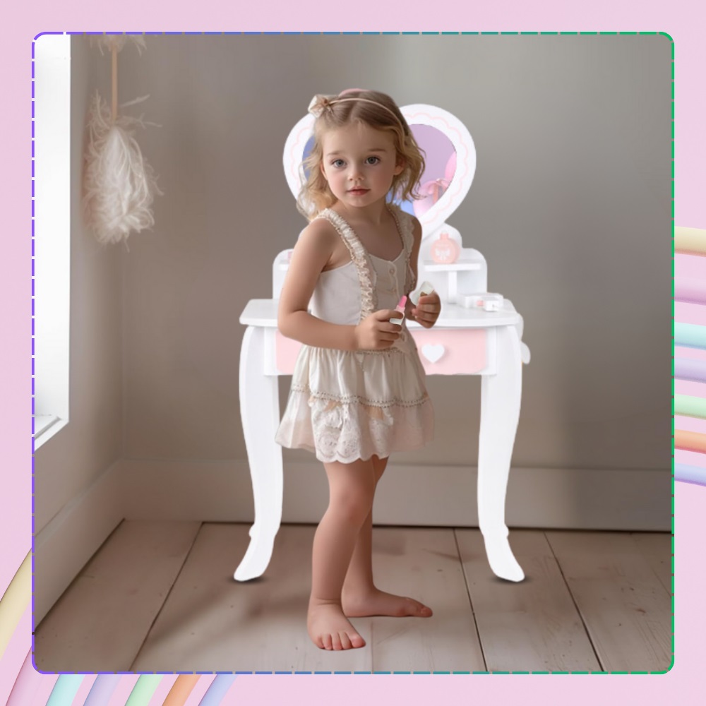 * Incantati-va fetita cu lumea magica a ingrijirii, cu simpatica masuta de toaleta din lemn!
