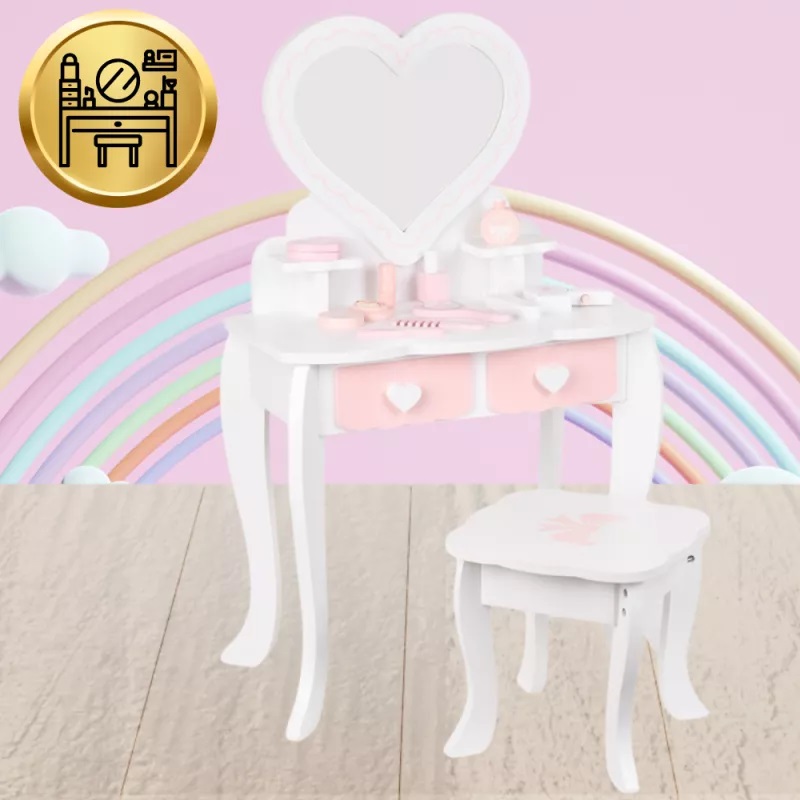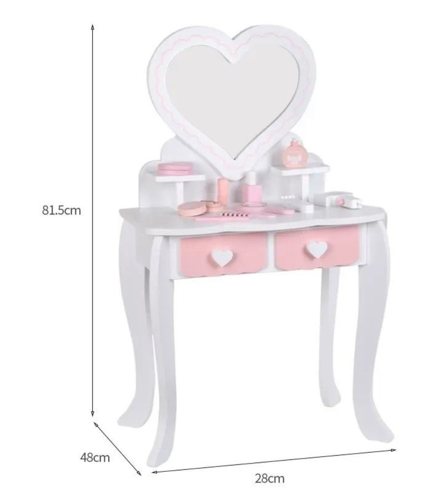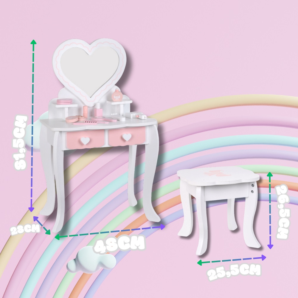Masuta de toaleta din lemn cu scaunel si accesorii pentru fetite