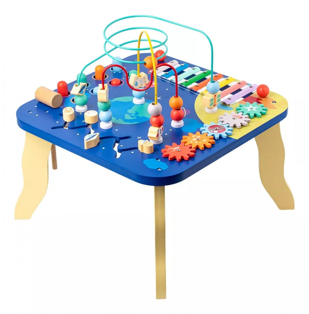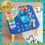 * Masuta senzoriala interactiva si muzicala, din lemn, ii invita pe copii intr-o calatorie fascinanta prin univers.
